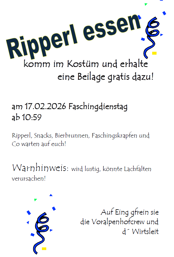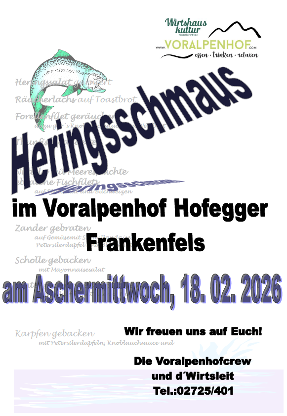 Tischreservierungen nehmen wir gerne unter Tel. 02725/401, per Whats APP 06803352856 oder Mail info@voralpenhof.com an.